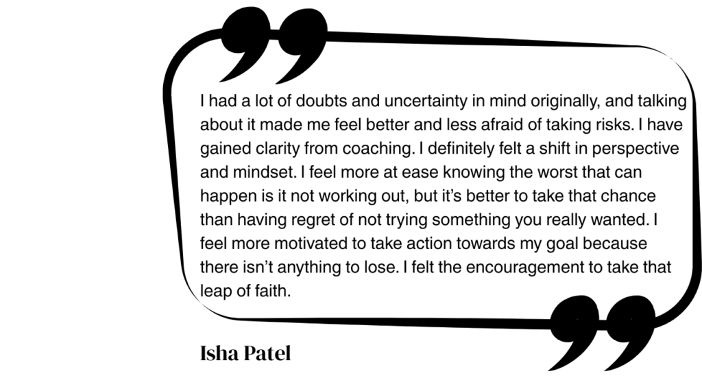 Broadly speaking, coaching provides a container for you to explore your potential, clarify your vision, and take grounded action to create that vision. This is especially for you if you are looking for a deeper change in your life and want to overcome self-sabotage, self-doubt, or gain clarity and a deeper vision for your life.